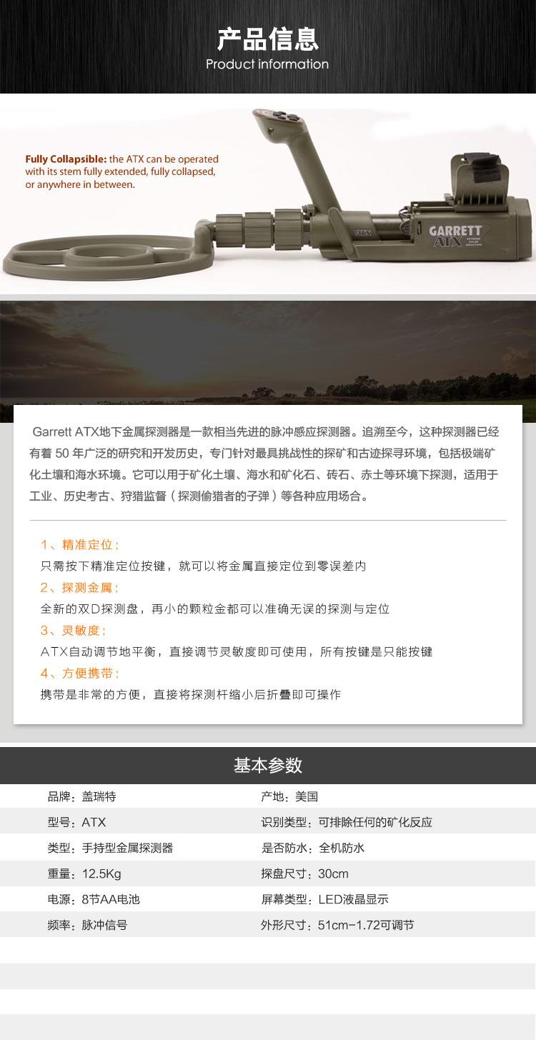 美國進口地下金屬探測器蓋瑞特ATX手持防水脈沖探測器自動地平衡