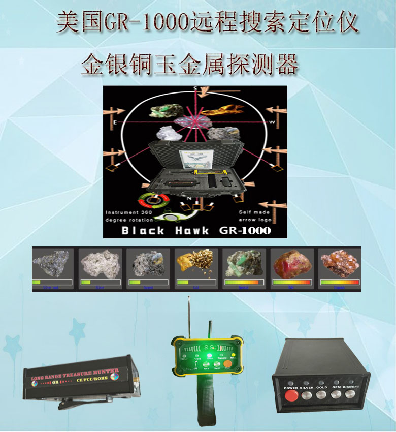 新款美國GR-1000地下大范圍遠程金銀寶石自動金屬探測器,具有大深度自動雷達定位,具有重量輕攜帶方便,手提箱主機,防水,抗摔,操作簡單實用。所有調節都很直觀簡單,直觀提供了不同金屬的不同信號。擁有比較強的金屬識別能力,可以選擇金屬模式金銀銅寶石玉器功能。