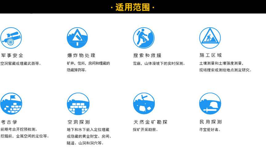 優越的定位性能可以檢測隧道-倉庫-倉庫形式的地層中的空隙或金屬,以及手工埋入地下或雕刻成自然地面的地下金屬(鋼筋混凝土-華山-巖土)。除此之外,還有一個適合室內呼叫的菜單選項,例如室內或洞穴(室內掃描-室外掃描)