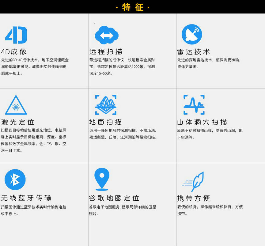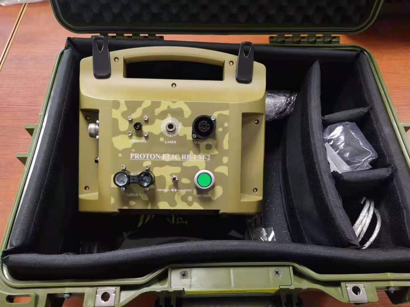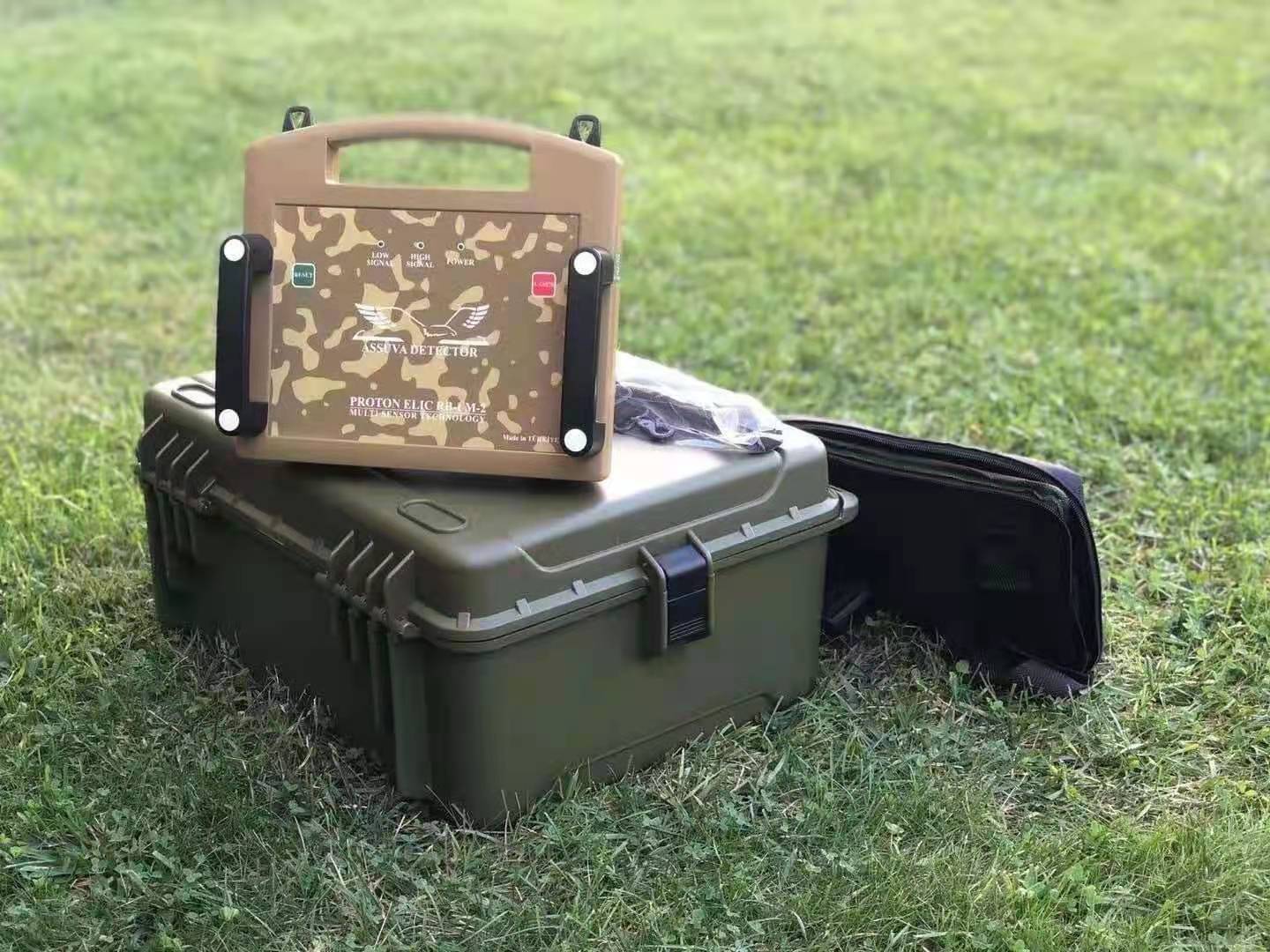 ASV質子遠程4D成像探地雷達M2(軍用版),功能強大,先進的遠程追蹤成像探地雷達,用于地下埋藏的金屬寶藏,瓷器,珠寶,隧道,隱蔽的山洞,地下空洞的快速搜索,原地不動掃描成像遠距離1000米,掃描成像深度根據探測目標物的不同15-50米,不限場地,殘垣斷壁,叢林樹木,丘陵山區,江,河,湖泊水下金屬寶藏索搜掃描,(紅色代表金屬寶藏,藍色代表地下空洞,深蘭色六角或者菱形代表珠寶,鉆石,寶石,綠色代表土壤環境參考值)儀器電腦屏幕實時顯示物體目標的距離,深度,電腦 軟件自帶位置坐標定位,激光定位,屏幕左邊的數字頻率實時顯示是金,銀,銅,空洞,一目了然,操作簡單,攜帶方便,