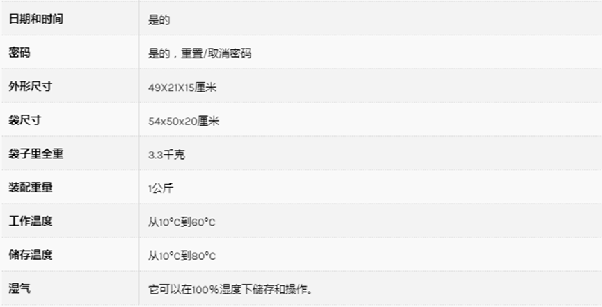 設備的技術規格: