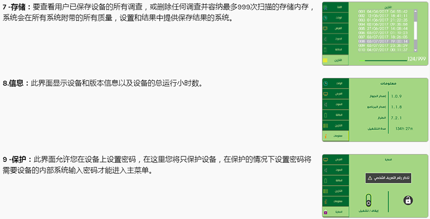 ? 與市場上的其他遠程檢測系統不同,它是一個現代化的系統,其特點是智能和舒適的設計,高感應捕獲和傳感系統,由雙發射和接收系統支持。定位和激勵目標的范圍,以便二進制刺激模塊可以捕獲和接收信號,其中包含結果界面上出現的多個聲學和數字指示器。