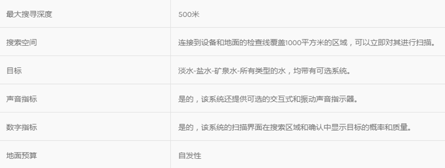 ? 該系統采用勘測和地球物理測量技術,以測量土壤的電阻水平,確定地下水和自流井的位置。