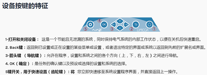 控制鍵界面,帶壓力開關的防震和防潮功能,使您可以在屏幕上完全控制設備的程序和設置。