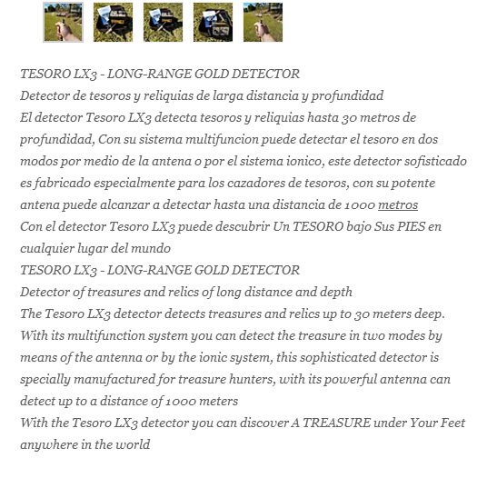 LX3探測器檢測到寶藏金屬達30米深的multifuncion系統可以檢測的珍貴的兩種模式通過天線或ionico,該探測器系統是專門生產,以天線尋寶獵人探測距離1000米