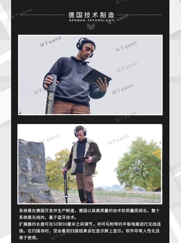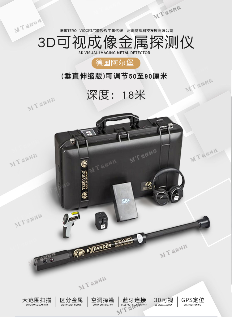 德國阿爾堡3D可視成像地下金屬探測儀垂直伸縮版可調節50至90厘米