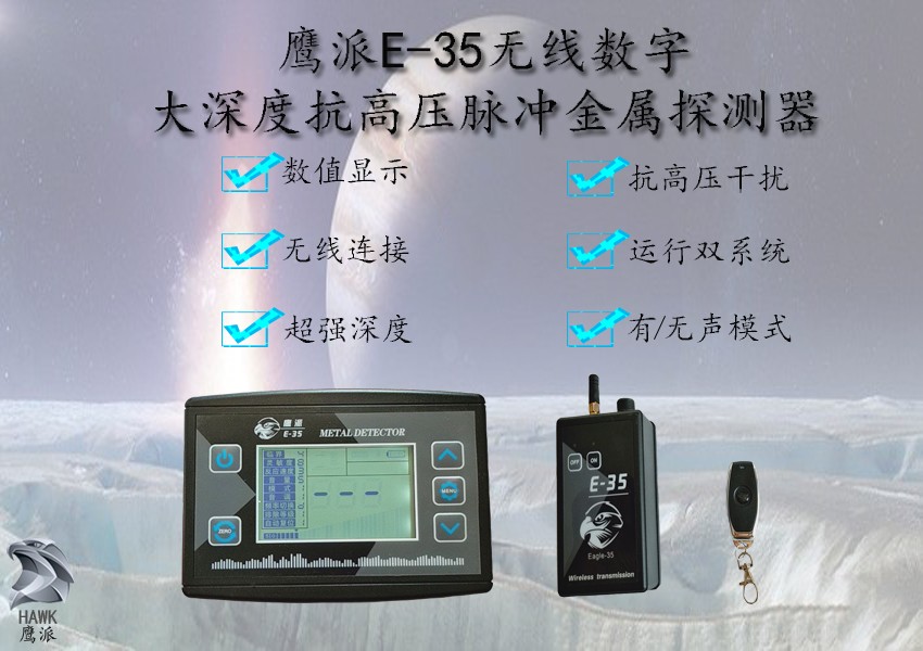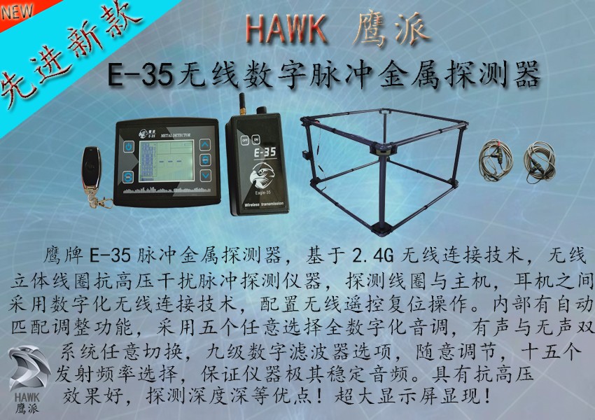 無線抗高壓帶識別脈沖金屬探測器鷹派E-35數字式脈沖金屬探測器