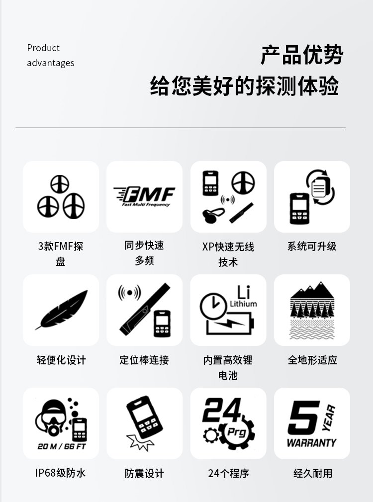 XP新款FMF金屬探測器探測儀地下高精度10米探寶黃金探金銀銅11寸