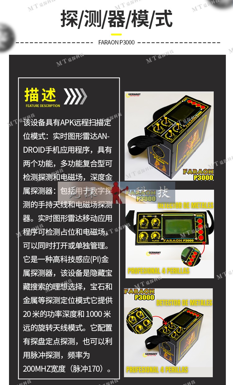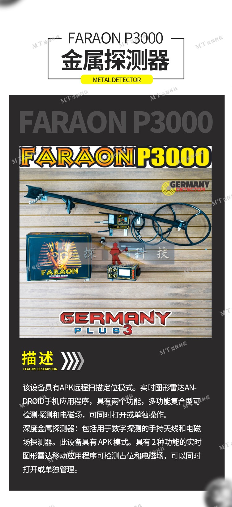 進口哥倫比亞法老王FARAON P3000 遠程掃描定位脈沖大深度探測復合型金屬探測器