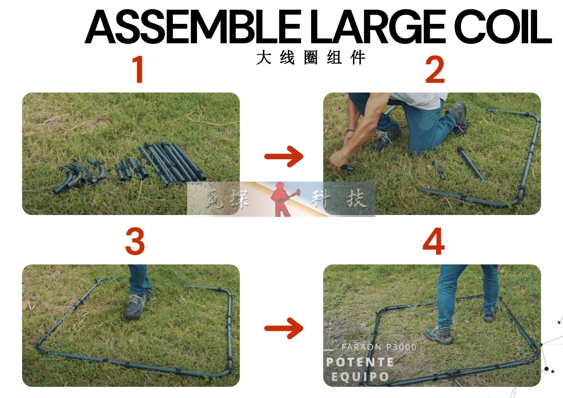 大型 100×100 厘米搜索線圈,可在廣闊區域進行搜索,目標是探測深度低于 6 米的物體。