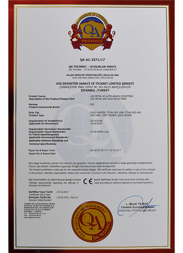 Gold Seeker 設備是德國好的設備,除了國際 ISO 9001 證書外,還根據國際規范獲得了歐洲 CE 認證。
