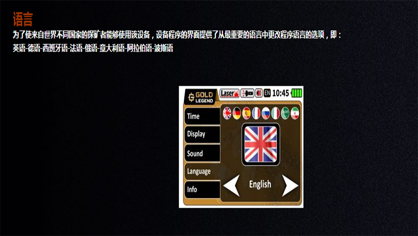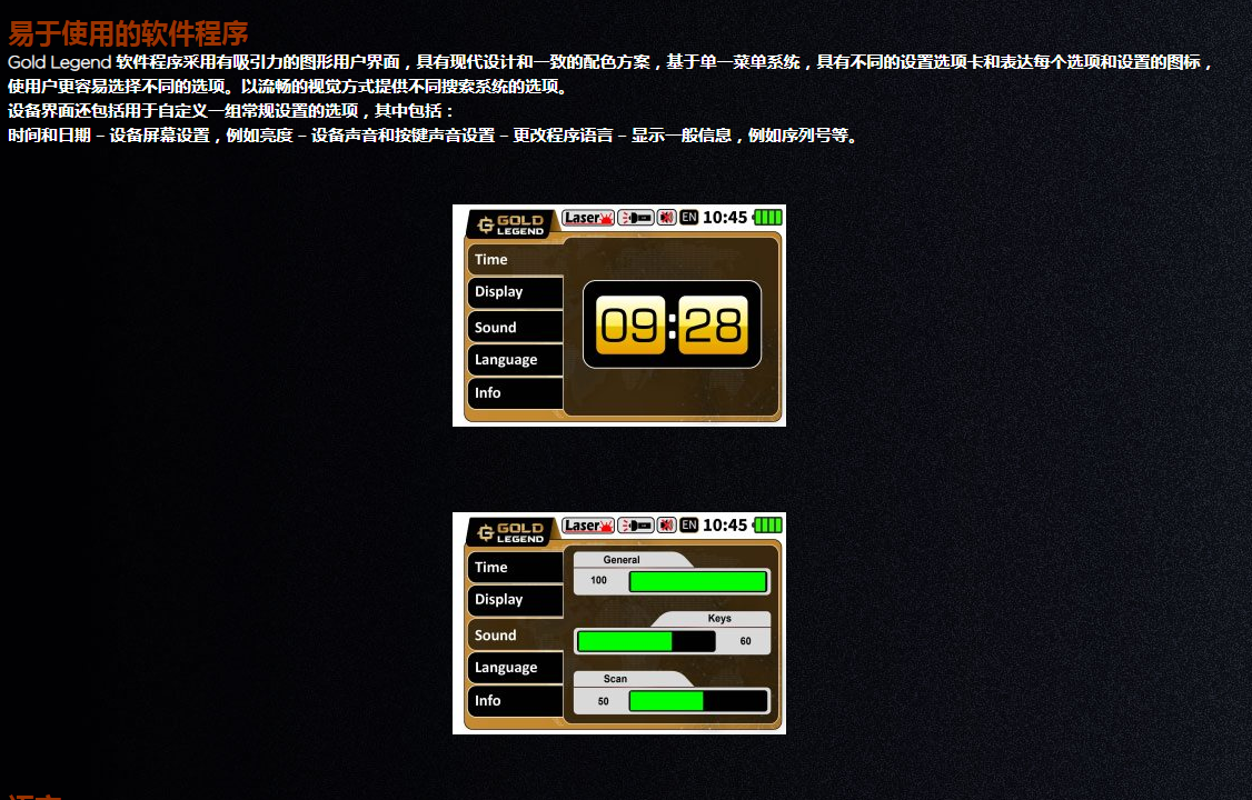 黃金傳奇 德國新技術 Geoground 的 Gold Legend 金屬探測器是一款專為尋寶者和探礦者推出的的產品,采用了新開發的技術,其中包括五個集成搜索系統中的遠程定位技術和離子場檢測,為探礦者提供了探測地下埋藏的必要工具到很深的地方。Gold Legend 是一款小型且易于使用的金屬探測器,通過簡單的程序提供了一個簡單的工具來選擇搜索系統、調整其設置并在設備的彩色屏幕上以簡化的視覺方式查看結果。