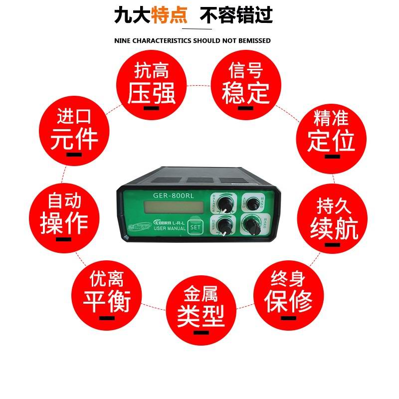 GER-800RL是一款高性能,多用途的脈沖金屬探測器,它集合了德國GER公司在電子脈沖方面的最新技術,GER-800RL具備自動操作模式和手動操作模式滿足不同客戶對不同環境地質的需求,它的功能設計代表了目前脈沖大深度地下金屬探測器的最前沿。GER-800RL非常容易去學習和操作,它的簡單操作和卓越性能,比其他同價位的脈沖金屬探測器更加出色,它非常適用于探測窖藏以及大深度遺跡的搜尋探測當然也可以用于地下金屬管道電纜線等定位探測。