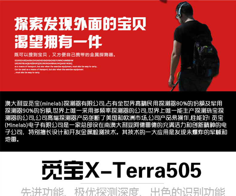 澳大利亞覓寶Minelab X-Terra 505 手持探盤地下金屬探測器探寶器